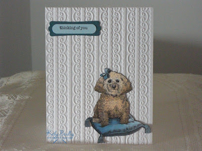 Kathy this is just sweet as can be! I love the embossing in the background, and your coloring on the little pooch is wonderful!