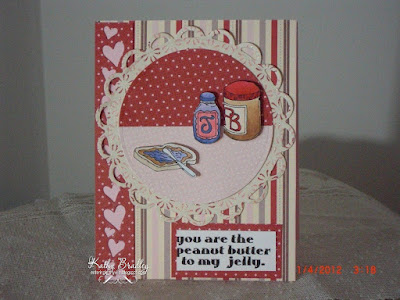 ReplyDeleteI love your Valentine card Kathy!! I think the peanut butter and jelly is such a cute image and makes for a great pun. What a sweet card!!